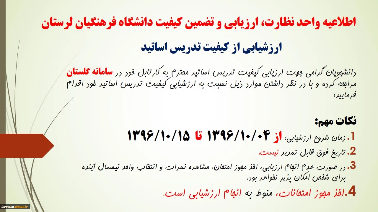 اطلاعیه ارزشیابی از کیفیت تدریس اساتید