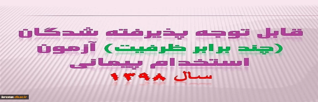 به اطلاع پذیرفته شدگان ( چند برابر ظرفیت ) آزمون استخدامی پیمانی می رساند جهت تشکیل پرونده و انجام مصاحبه سهمیه اداره کل آموزش و پرورش استان لرستان طبق زمانبندی تعیین شده در محل تعین شده مراجعه نمایند. 2