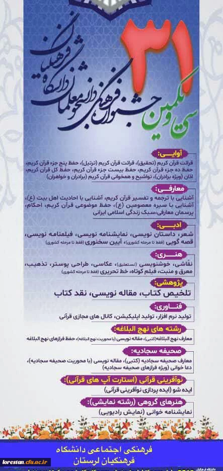 دستورالعمل سی و یکمین جشنواره فرهنگی (قرآن و عترت) ویژه دانشجومعلمان دانشگاه فرهنگیان 2