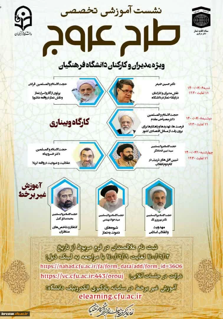 دوره آموزشی تخصصی طرح عروج* در *روزهای شنبه ششم، دوشنبه هشتم، وچهارشنبه دهم* شهریورماه 2