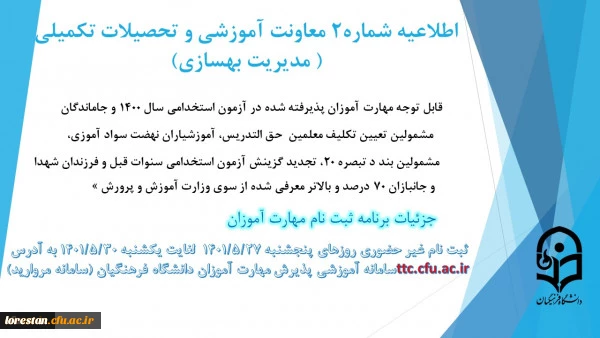 زمان بندی ثبت نام غیر حضوری و حضوری از مهارت آموزان پذیرفته شده در آزمون استخدامی سال 1400 و سایر جاماندگان اعلام شد 3