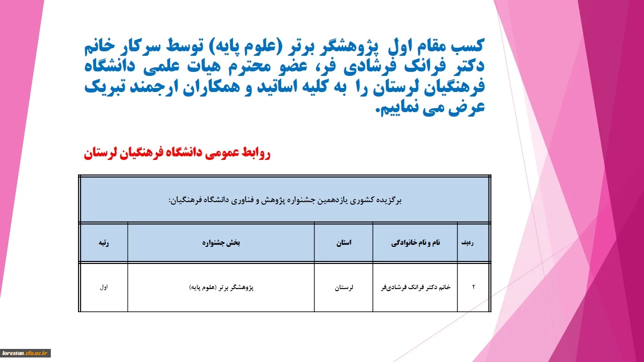 کسب مقام اول پژوهشگر برتر (علوم پایه) 2