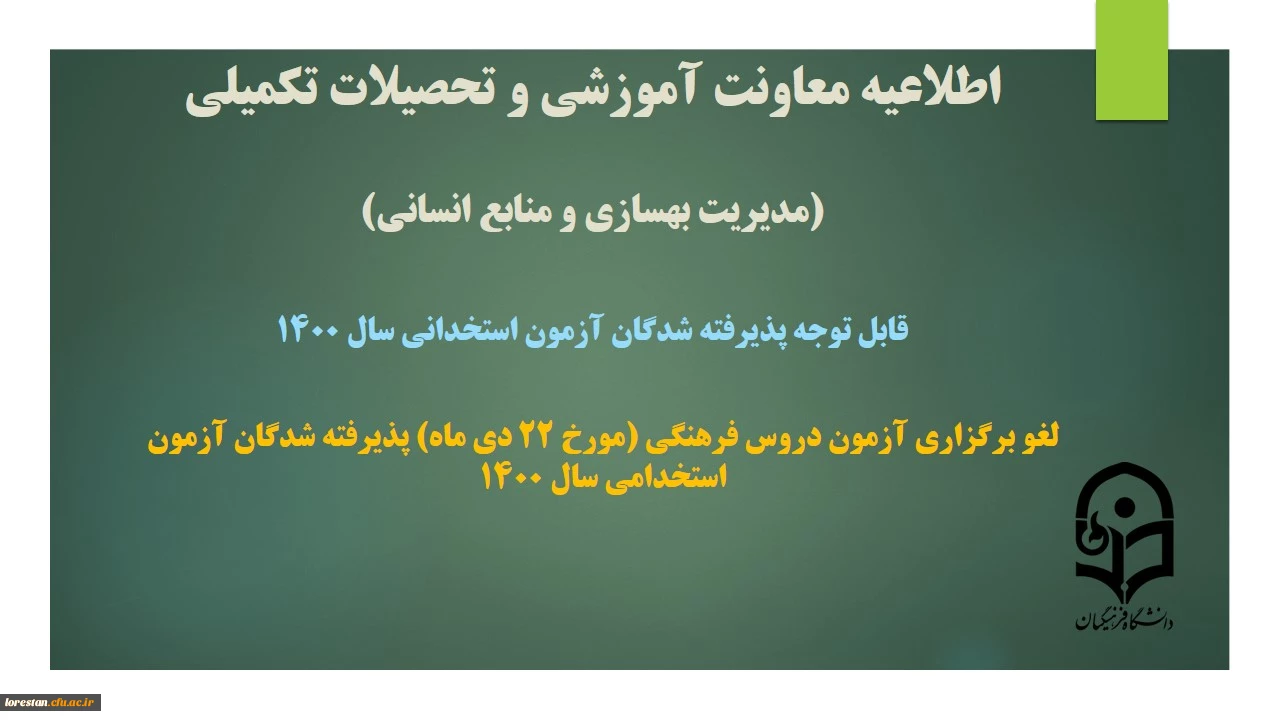 لغو برگزاری آزمون دروس فرهنگی (مورخ 22 دی ماه) پذیرفته شدگان آزمون استخدامی سال 1400 2
