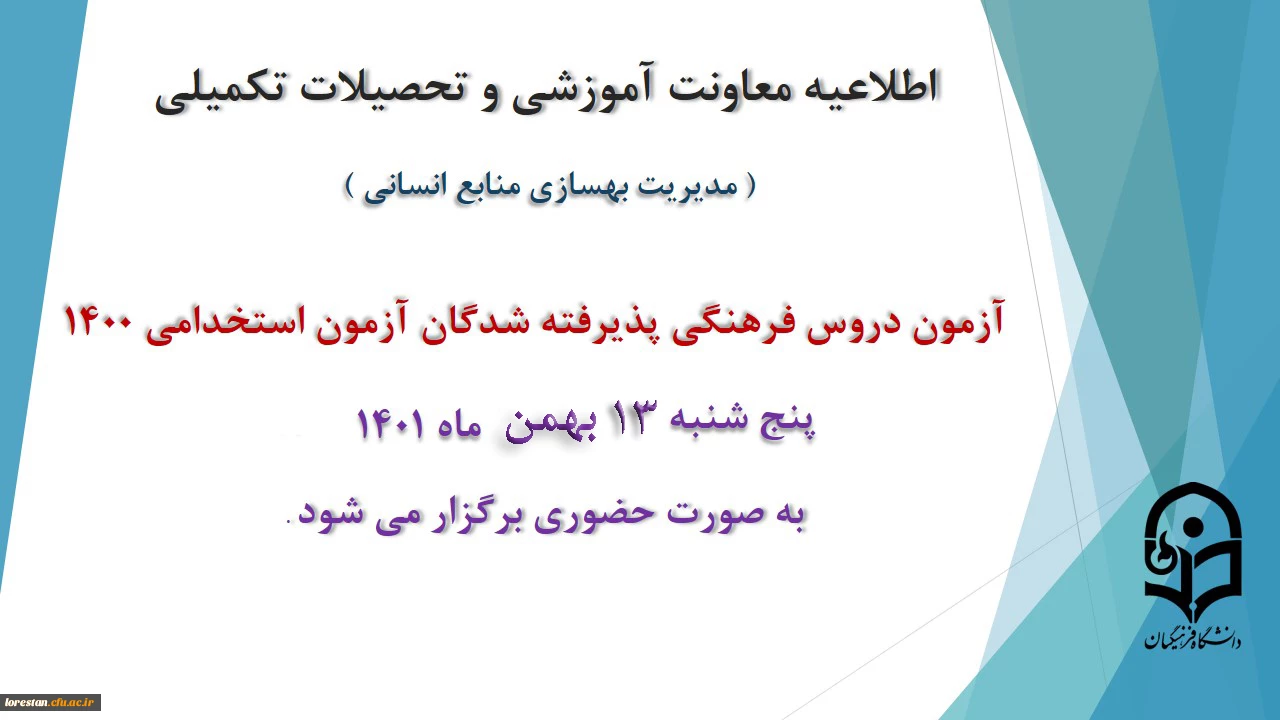 امتیاز دهید : برگزاری آزمون دروس فرهنگی پذیرفته شدگان آزمون استخدامی سال 1400 2 دوشنبه 10 بهمن 1401 ساعت 9:57