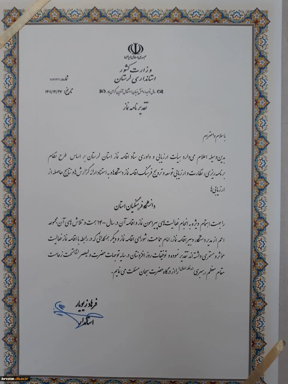 تجلیل از دستگاه های برتر در اجلاس استانی نماز 4