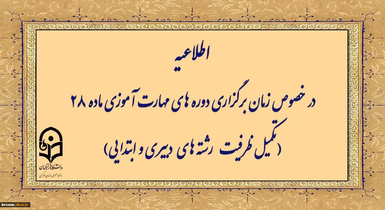 اطلاعیه در خصوص زمان برگزاری دوره های مهارت آموزی ماده ۲۸ (تکمیل ظرفیت رشته های دبیری و ابتدایی) 2