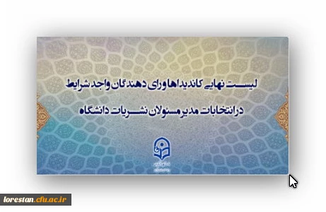 لیست نهایی اسامی کاندیداها و رای دهندگان انتخابات نمایندگان مدیر مسئولان کمیته ناظر بر نشریات دانشگاهی دانشگاه فرهنگیان 4