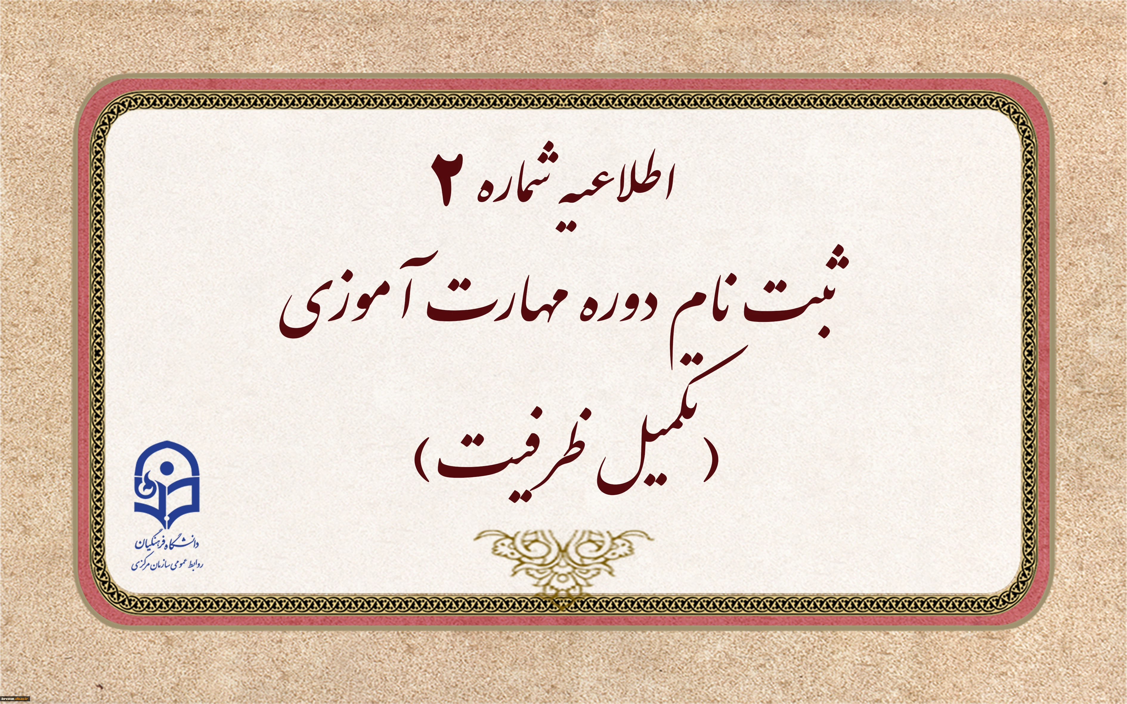 ثبت نام دوره مهارت آموزی(تکمیل ظرفیت) 2