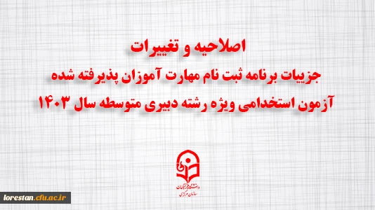اصلاحیه و تغییرات جزییات برنامه ثبت نام مهارت آموزان پذیرفته شده آزمون استخدامی ویژه رشته دبیری متوسطه سال ۱۴۰۳ 2