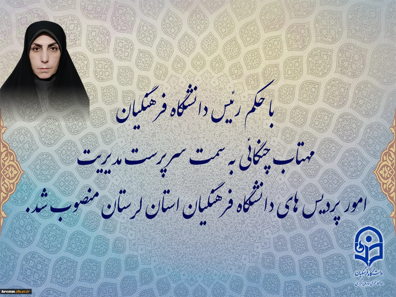 مهتاب چنگایی به سمت سرپرست مدیریت امور پردیس های دانشگاه فرهنگیان استان لرستان منصوب شد. 2